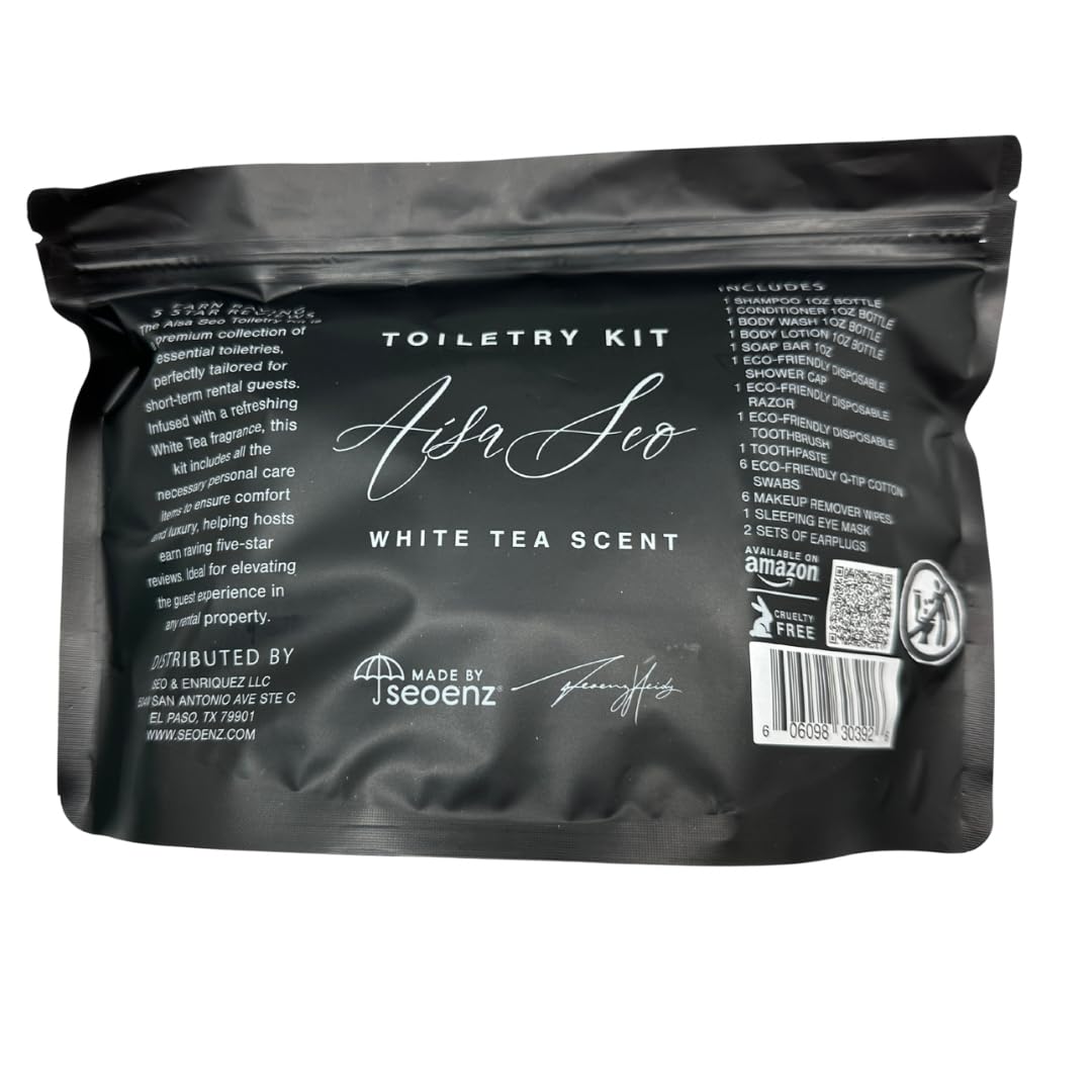 ZIP SEAL CASE; It’s time to upgrade to a toiletry set that fits better into your guest’s life; This Made By Seoenz kit of Airbnb essentials for guests comes in a soft zip case that allows them to easy take their toiletries with them after their stay is over; What’s more, our trial size toiletries also make a great homeless care package for people who love to give back to their community