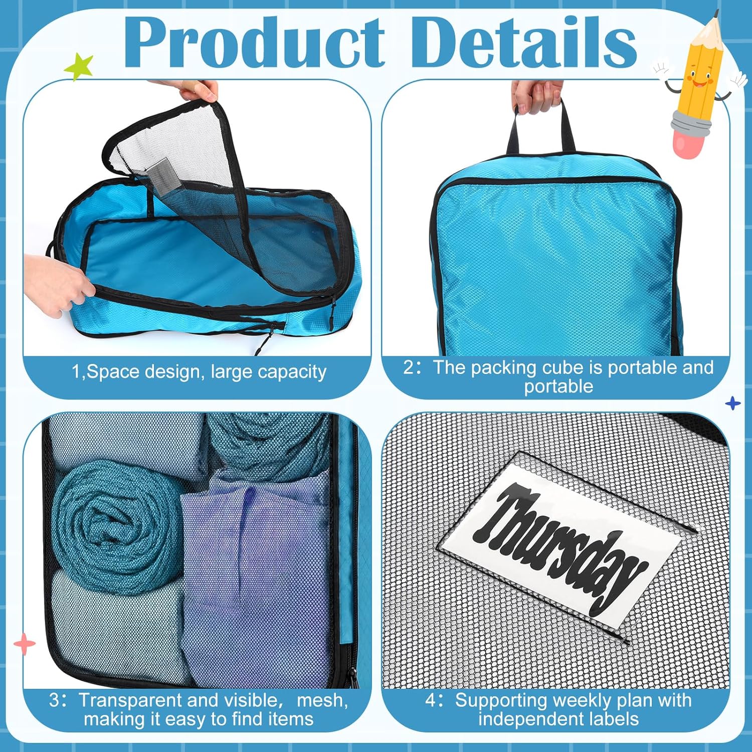 HomeTravel GearTravel Accessories7 Pcs Packing Cubes for Travel Large Days of Week Compression Packing Cube with Labels Luggage Organizers Storage Bag(Blue)