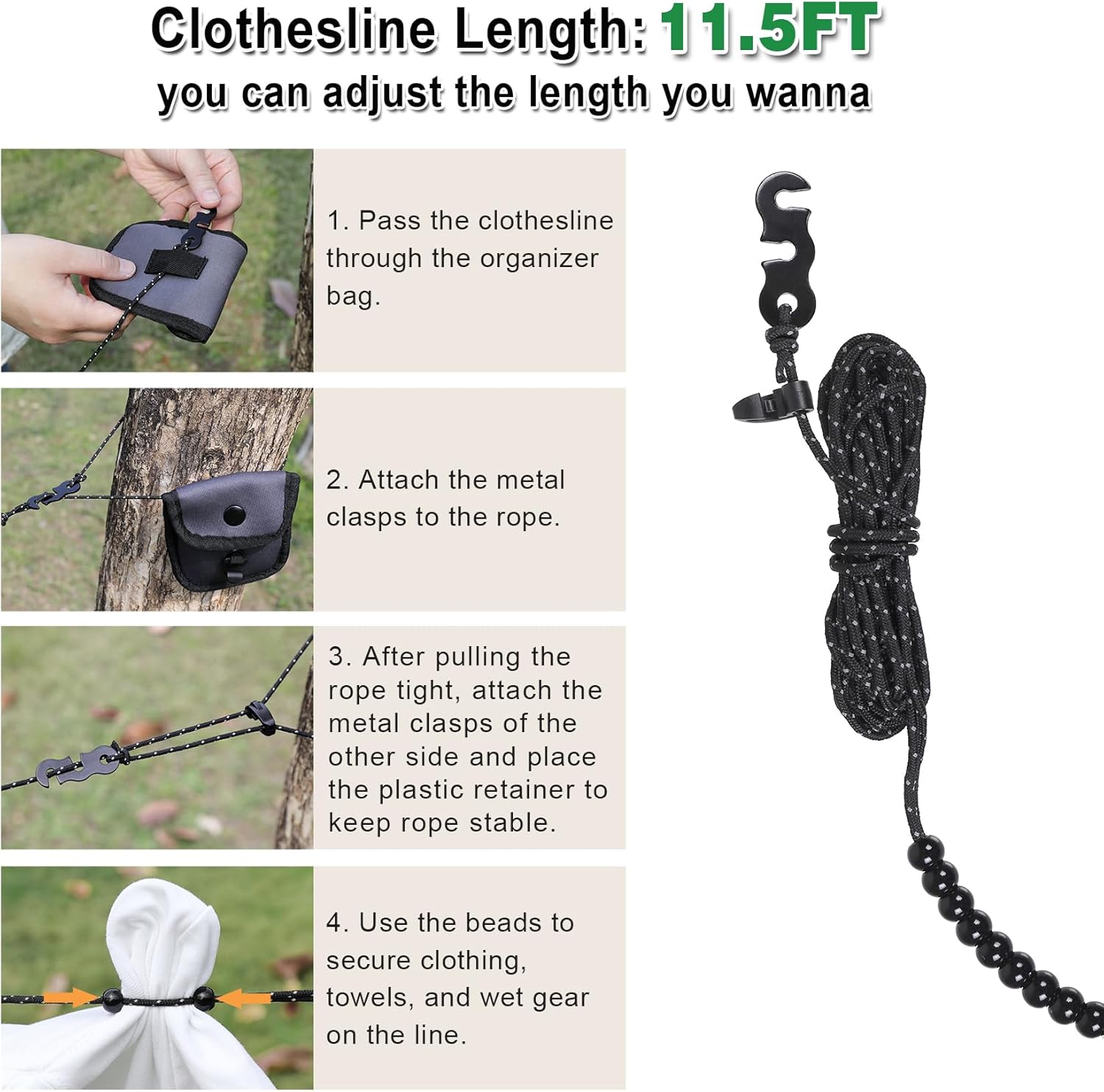EXVITAL Portable Travel Clothesline Lightweight Camping Clothes Line with 24 Beads for Indoor Hotels Backyard, Outdoor Cruise Ships, RVs, Tents, 11.5 Feet